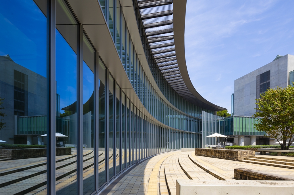 空間の広がりや奥行き: 広角レンズを使い、建物のダイナミックさを表現する。