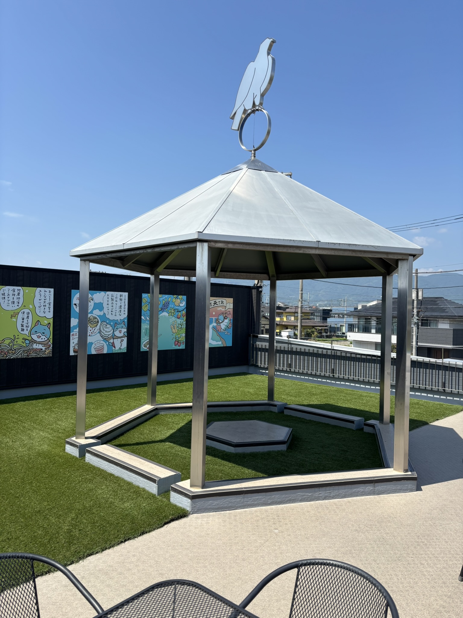 その圧倒的な存在感に思わず写真を撮ってしまいました。おそらく「この場所を訪れた記念に、ぜひ写真を撮ってSNSなどで拡散してください!」という意図があるのでしょう。私自身も職業柄、こういった目を引くデザインには敏感に反応してしまいます。